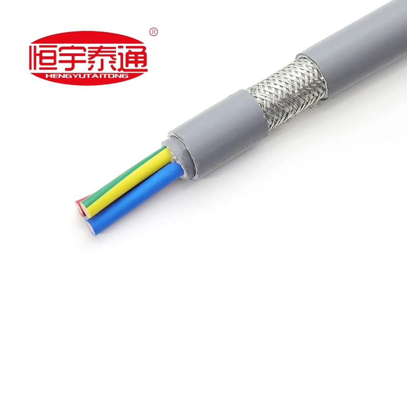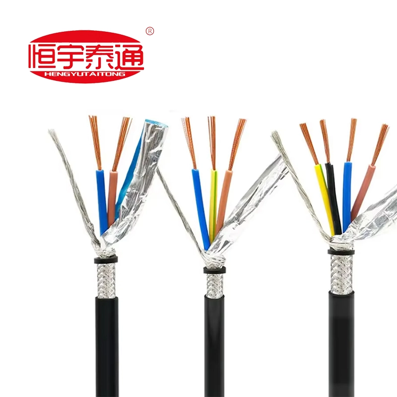 Kobbertråd flettet skjerming mot elektromagnetisk interferens (EMI); PVC-isolasjon og kappe gir grunnleggende fukt-, olje- og slitestyrke.